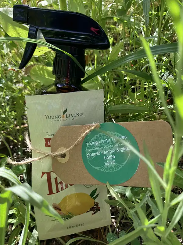 Young Living’s Thieves brand cleaner sample with a glass spray bottle so you can give this toxin free cleaner a try. I use this for everything! Counters, toilets, sinks, floors etc. A minimalist’s dream…one cleaner to store, no harsh chemicals and it cleans!!
